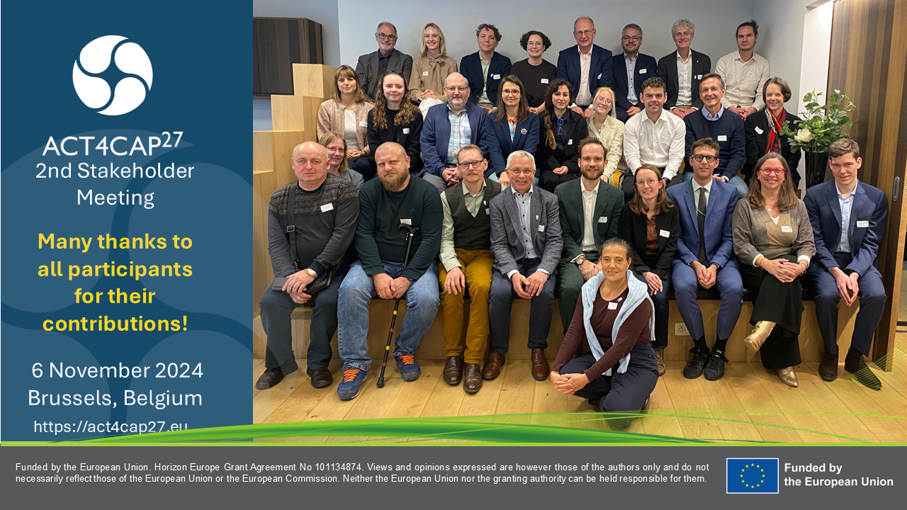 The ACT4CAP27 project held its Second Stakeholder Meeting in Brussels on 6 November 2025, bringing together project partners, researchers, policymakers, and modelling experts to discuss