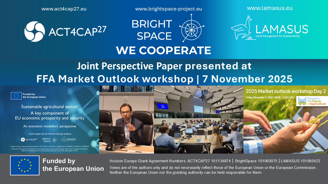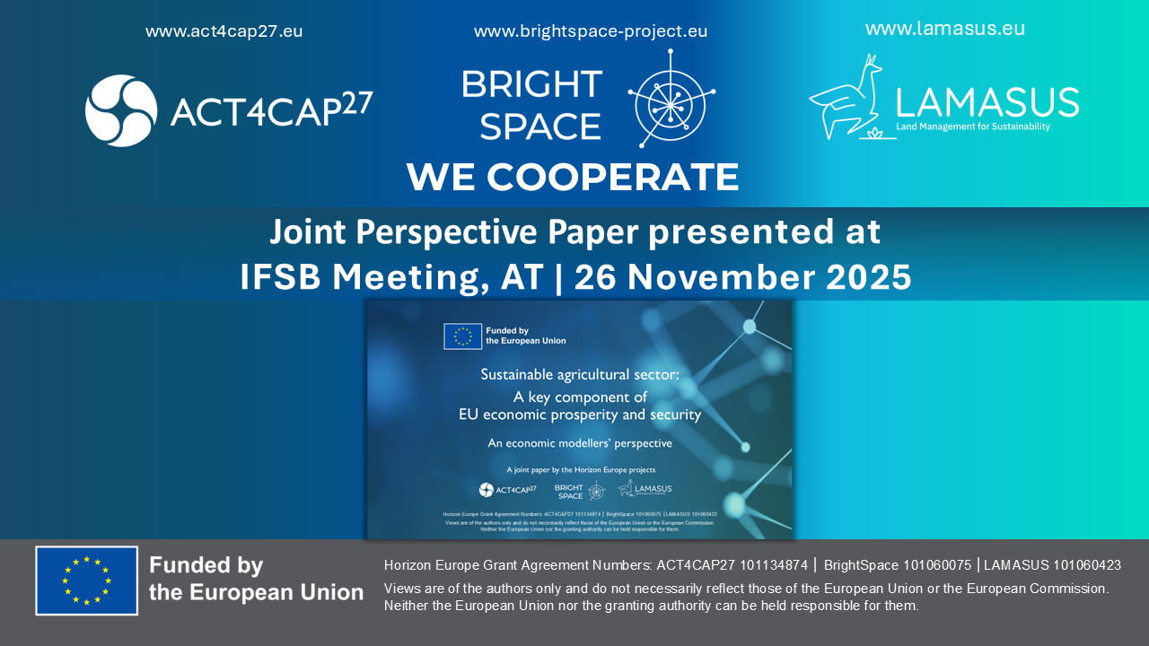 On 26 November 2025, Peter Havlik of the International Institute for Applied Systems Analysis (IIASA) is invited by Josephinum in Wieselburg, Austria, to present the ACT4CAP27–BrightSpace–LAMASUS joint perspective paper (https://doi.org/10.5281/zenodo.16413131) as the keynote address